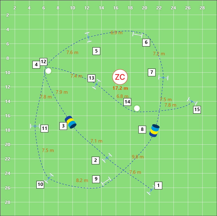 • visualizzazione della distanza tra la Zona di Conduzione e l'attrezzo più lontano;